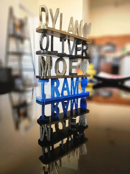 Personalized 3D Printed Name Art,Where Your Name Becomes a Unique Masterpiece. This product is a unique name logo. By entering two names, they can be cleverly combined into one, presented on both sides, symbolizing the love and warmth that accompany each other.